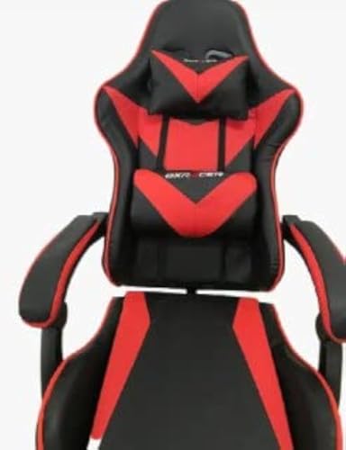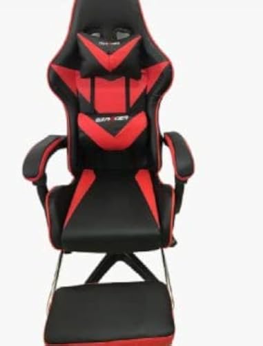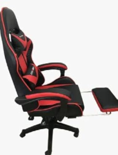 Other - كرسي العاب فيديو بمسند للأرجل اللون أسود مع أحمر، جلد