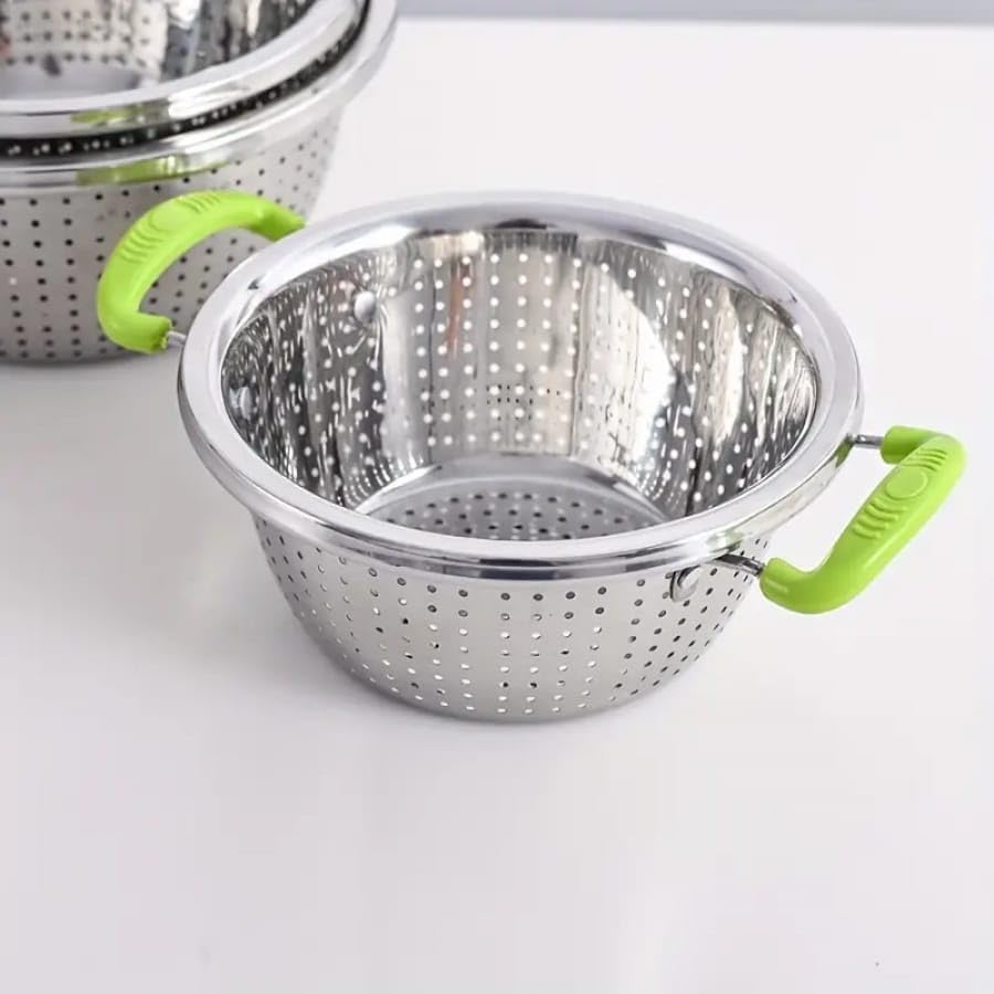- مجموعة متعددة الاستخدامات: طقم من 3 مصافي من الفولاذ المقاوم للصدأ بأحجام مختلفة مثالية لغسل وتصفية الخضروات والفواكه والمعكرونة والأرز