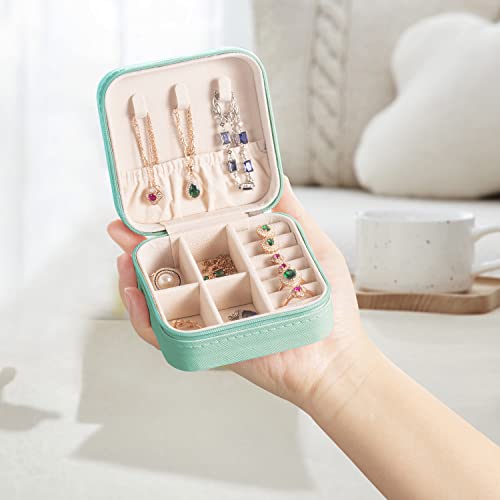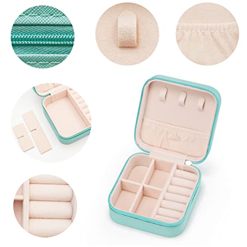 VOMNA - صندوق منظم مجوهرات جلدي صغير للسفر من FRJHBS للنساء والفتيات، صندوق تخزين خواتم وأقراط وقلادات وأساور، صندوق مجوهرات متعدد الالوان