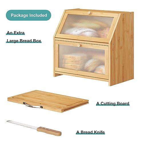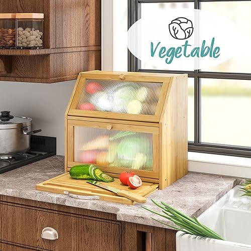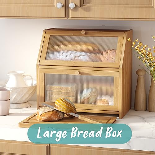 Vriccc - عياشة كبيرة جدًا مع لوح تقطيع من خشب البامبو بتصميم طبقتين وسعة كبيرة لحفظ الخبز ومزودة بباب اكريليك مائل مناسبة لطاولة المطبخ من فيريك (طبيعي)