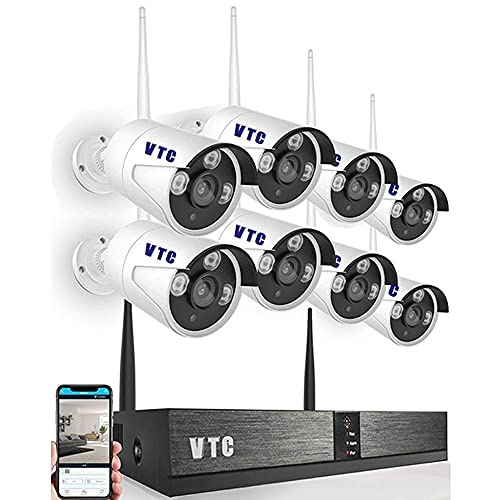 VTC - طقم ثمانية كاميرات مراقبه 1.3 ميجابكسل اى بى لاسلكية خارجى وداخلى اتش دى فائقه الوضوح مع جهاز إن فى أر