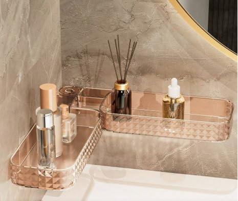 Generic - رف زاويا حامل للشامبو والميكب وزجاجات البرفان وادوات العنايه الشخصيه اكريليك متحرك قابل للطي W (بني)