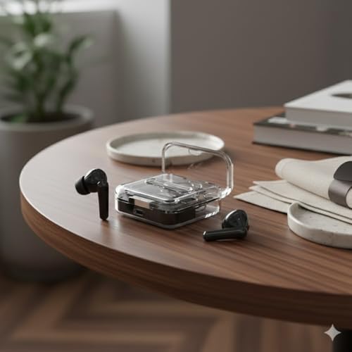 - تتميز السماعات بتصميم شفاف عصري يكشف عن المكونات الداخلية بشكل أنيق وجذاب.
