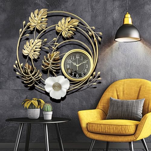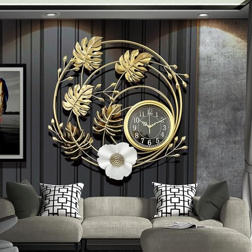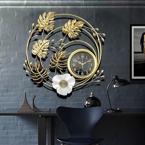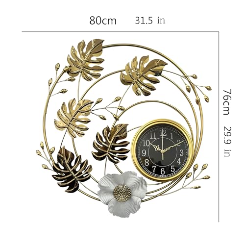 Egypt Valley Import & Export - ساعة حائط بتصميم فاخراوراق الاشجار من وادي مصر الاستيراد والتصدير مقاس 76 × 80 سم دائرية معدنية مصنوعه من الاستانلس ستيل صامتة لا تصدر صوت تكتكة عصرية لديكور المنزل وغرفة المعيشة والمكتب، تناظري