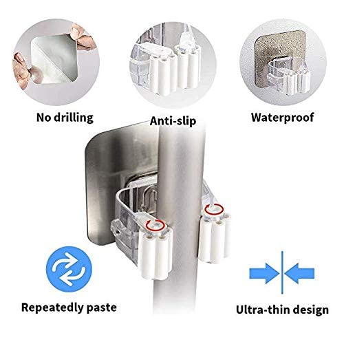 Spaceshoop - حامل يثبت على الحائط لتعليق المكنسة والمساحة لتنظيم المطبخ مع ملحقات مثبتة