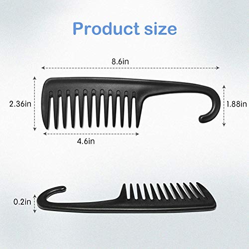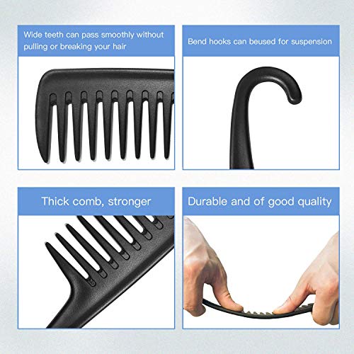 Wapodeai - Wapodeai 2 Pcs Wide Tooth Comb Shower Comb With Hook, Good for Curly Hair Wet Dry, Premium Tangle Free Combs Black.