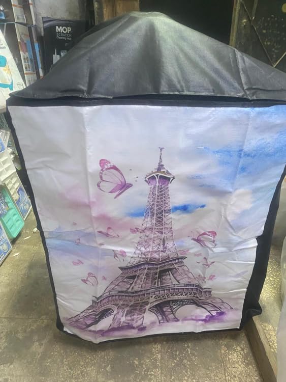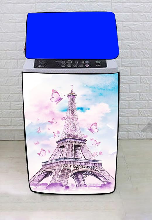 Generic - غطاء غسالة فوق اتوماتيك 10-12 كيلو بطباعة ثلاثية الابعاد لون الظهر قد يختلف اللون (برج ايفل غامق)