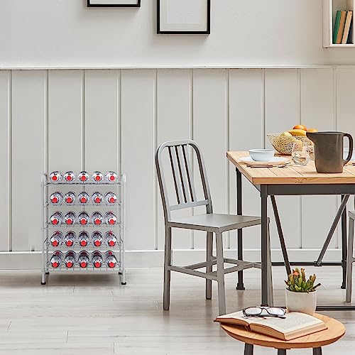 OYEAL - منظم حامل زجاجات المياه من 5 طبقات، رف تخزين لزجاجات المياه في المطبخ، منظم وتخزين يتسع لـ 30 زجاجة، فضي