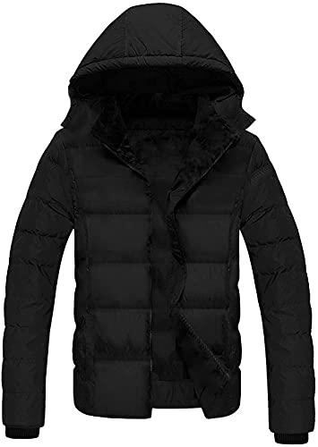 Generic - جاكيت شتوي منتفخ مقاوم للماء بغطاء للرأس، مبطن من الاسفل، ملابس خارجية مبطنة مع سحاب للاغلاق، نمط كاجوال دافئ
