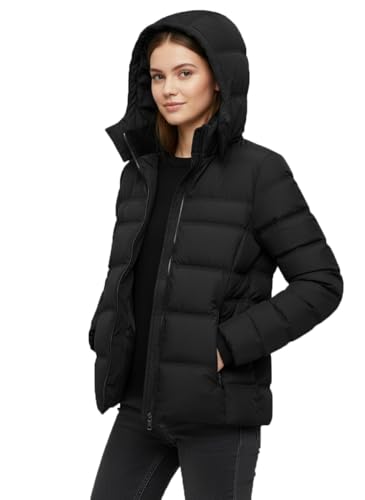 Generic - جاكيت منتفخ بغطاء رأس مقاوم للماء للنساء، معطف شتوي مبطن بسوستة كاملة، جاكيت مبطن بتصميم معزول