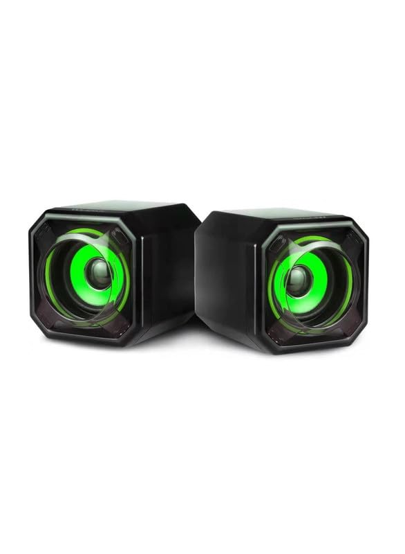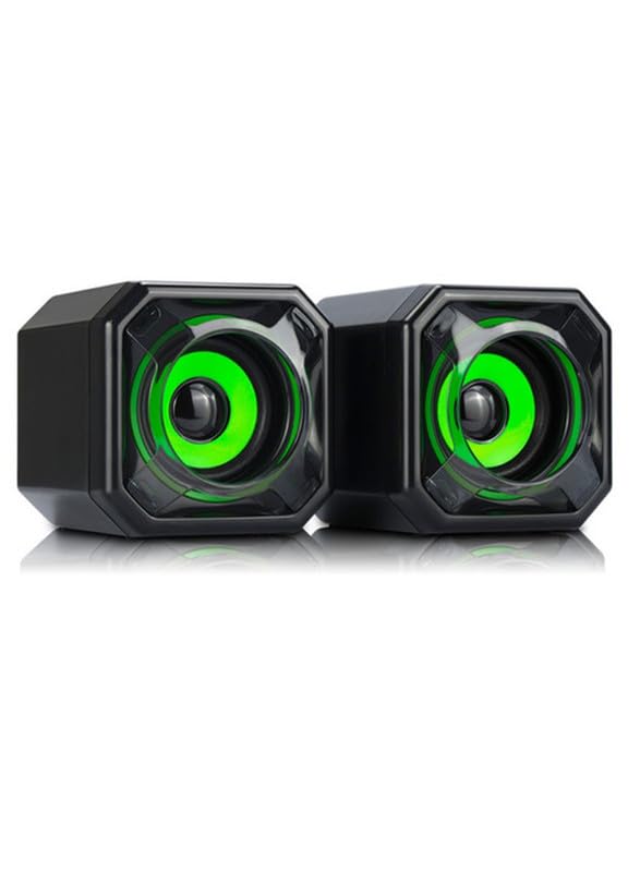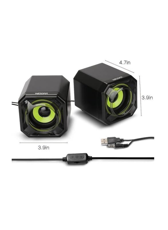 Wesdar - مكبر صوت للكمبيوتر 3.5 ملم بمنفذ USB المكتبي واللاب توب والنوت بوك من ويسدار عبوة قطعتين لون أسود وأخضر موديل CS2