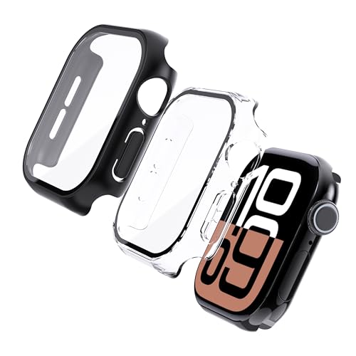 WFTE - دبليو اف تي اي [عبوة من 2 حافظة لساعة ابل سلسلة 11/10 42 ملم مع شاشة حماية من الزجاج المقسى، غطاء كامل صلب مضاد للسقوط ومضاد للخدش - نحيف ومقاوم للصدمات وغير قابل للانزلاق (اسود وشفاف)