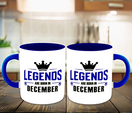 WHATS YOUR KICK - مج للقهوة والشاي سيراميك ملون مطبوع عليه Legends are Born in December من واتس يور كيك® أزرق غامق مع قاعدة أكواب | للشرب | للحليب - أفضل هدية | عيد ميلاد الأسطورة متعدد 14
