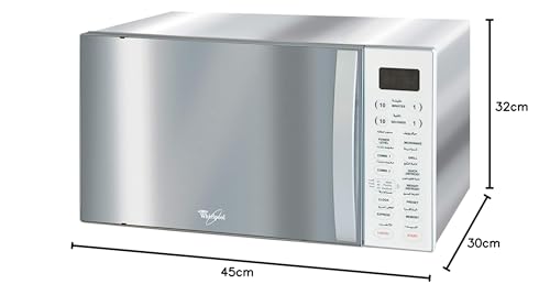 Whirlpool - فرن ميكروويف بشواية من زجاج فضي عاكس مع لوحة تحكم ديجيتال وخاصية إذابة الثلج ديفروست السريعة، طهي مختلط، وظيفة الذاكرة، تجويف من الفولاذ المقاوم للصدأ من ويرل بول، 38 ل