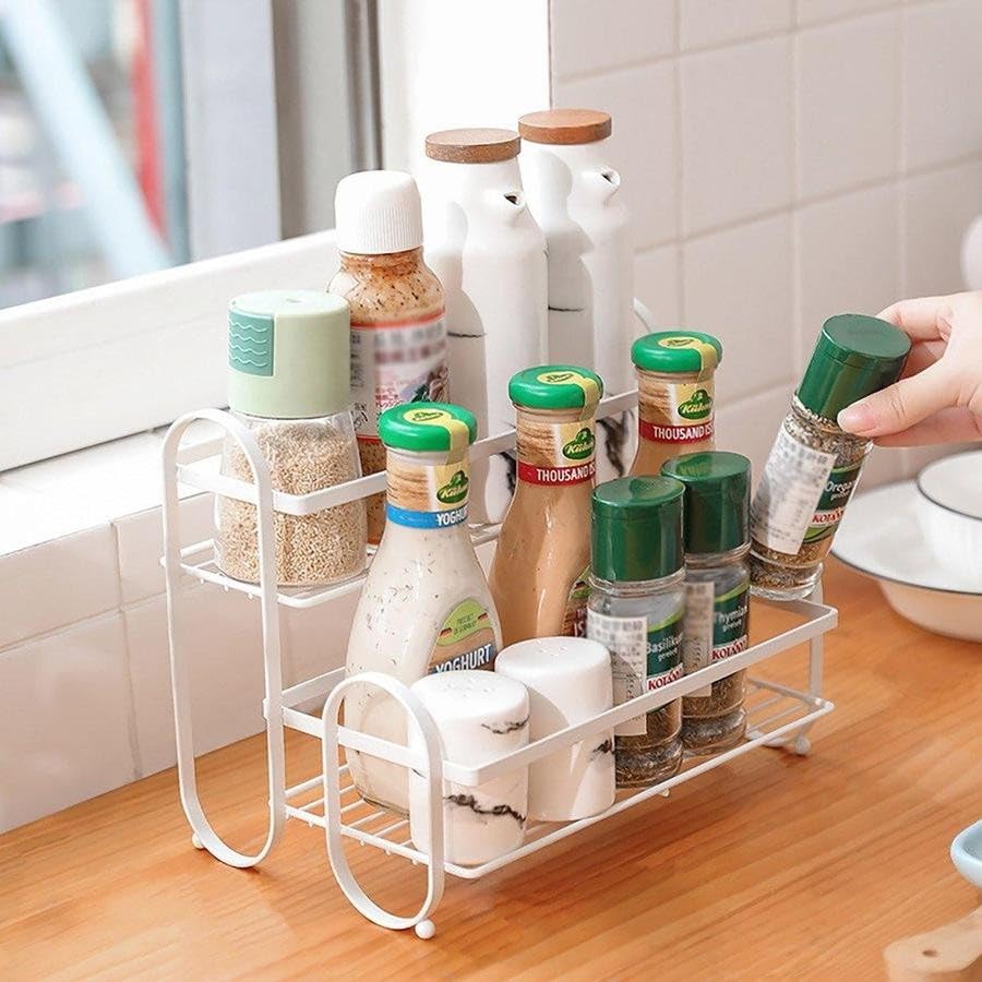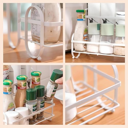 • تصميم قوي ومتین: إطار معدني أبيض متين مع أرفف وأقسام تخزين متعددة لتخزين منظم للزجاجات والحاويات بأحجام مختلفة.