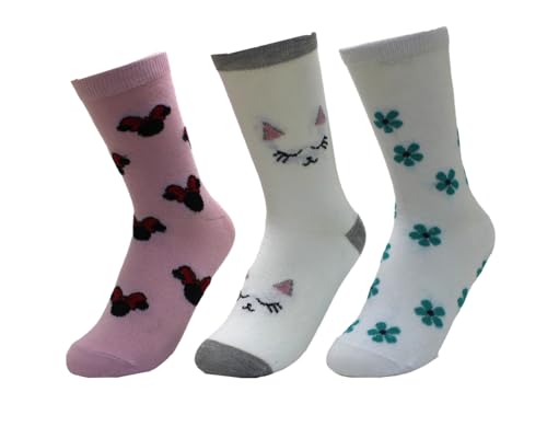 White FLOWER LIFE STYLE - شرابات قطنية برقبة دائرية ضيقة للبنات من وايت فلاور، 3 قطع مقاس 8 سنوات - متعددة الالوان 1102-8-Q3