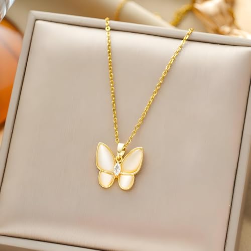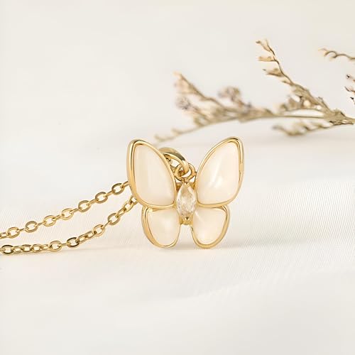 Generic - مجوهرات مطلية باللون الابيض - قلادة بدلاية على شكل فراشة راقية للنساء، تضيف لمسة من الأناقة إلى المظهر الكاجوال او الرسمي، هدية انيقة لجميع المناسبات