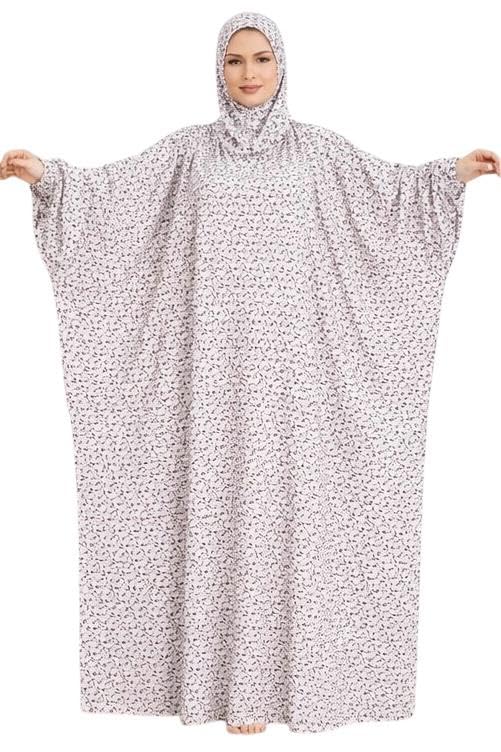 Generic - دلاية صلاة نسائية، مصنوعة من القطن المصري، باللون الأبيض مع الوردي، مقاس موحد، بتصميم زهري