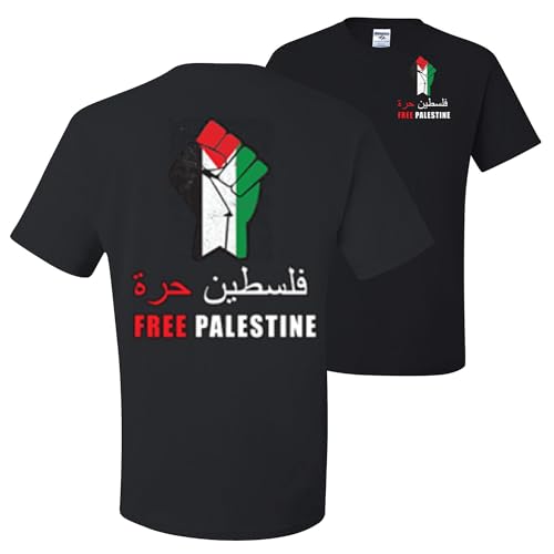 wild custom apparel - تي شيرت مطبوع عليه علم فلسطين الحرة من الأمام والخلف