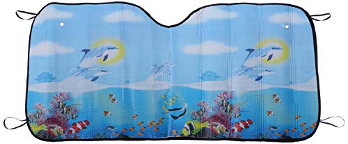 Generic - واقي شمس للزجاج الأمامي للسيارة، فضي بأشكال دولفين، عاكس للأشعة فوق البنفسجية سميك من 5 طبقات، غطاء واقي للنافذة الأمامية ويحافظ على برودة سيارتك