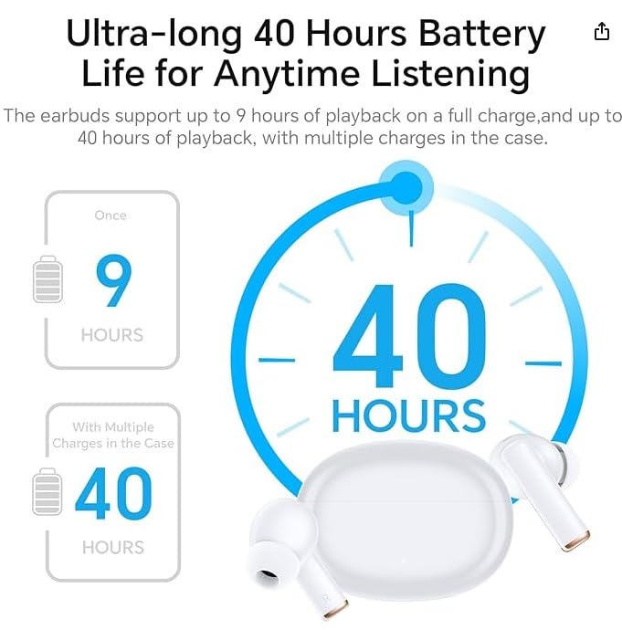 • "عمر البطارية: 8 لكل سماعة أذن / 40 ساعة للحافظة