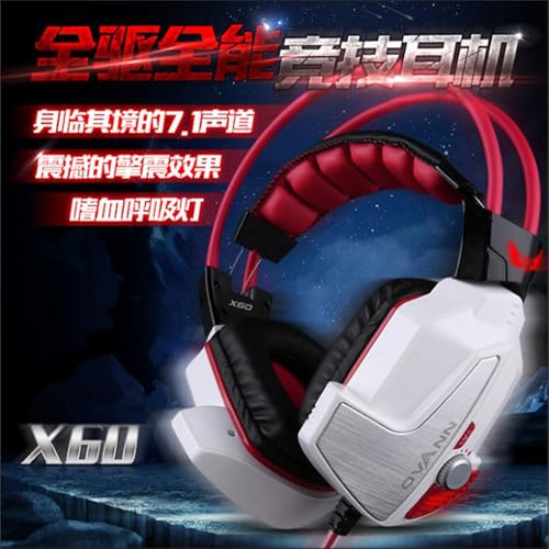 • سماعة رأس سلكية للألعاب X60، نظام مكبر صوت افتراضي رباعي الأبعاد، صوت محيطي 7.1 ملم، ميكروفون لتقليل الضوضاء، مريحة وناعمة وجيدة التهوية بدون ضغط الأذن، 3.5 ملم USB LED