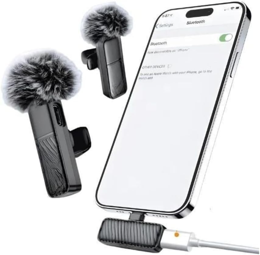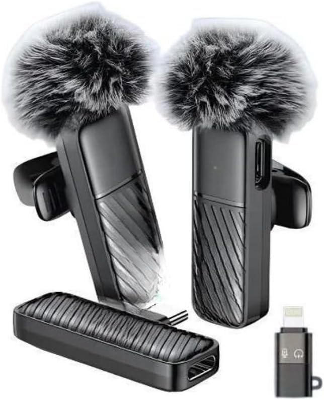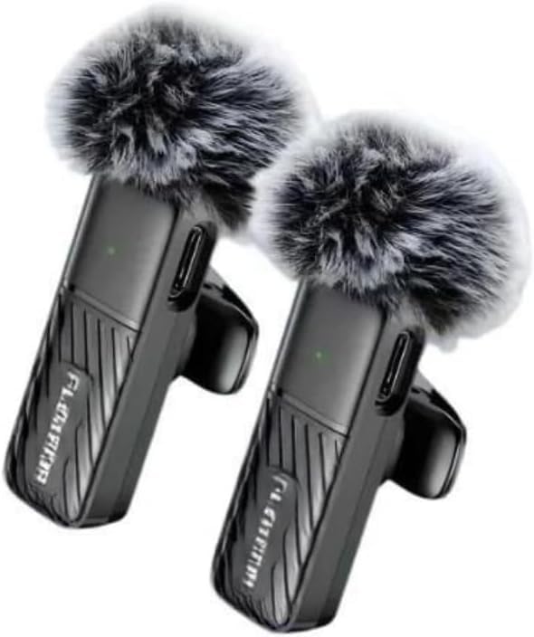Generic - ميكروفون لاسلكي بلوتوث للهواتف الذكية مع مستقبل USB-C وغطاء تقليل الضوضاء – حل عملي للتسجيل الصوتي