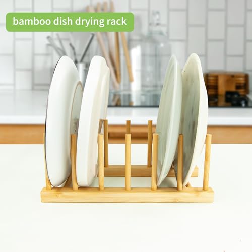 Wironoat - رفوف لتجفيف الأطباق من البامبو من ويرونوت، رفوف منظمة للأطباق توضع في الدولاب، رفوف تخزين بـ 6 فتحات - قطعة واحدة، خيزران