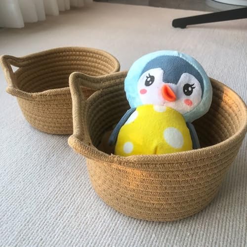 Wisafory - سلة تخزين دائرية من ويسافوري بتصميم أذني قطة من خيوط القطن، سلة تخزين بنسيج محبوك من القطن، سلة تخزين متعددة الاستخدامات، صندوق تخزين صغير للمنزل والمكتب