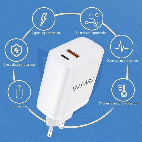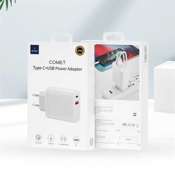 WiWU - محول طاقة 30 واط نوع سي من ويفو كوميت - USb-A PQ303E - ابيض، لهاتف خلوي