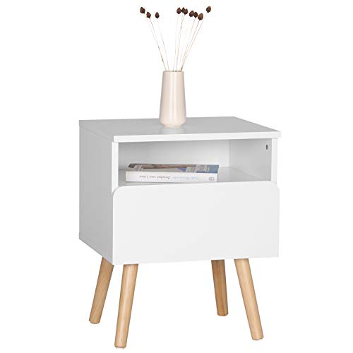 WOLTU - وولتو® طاولة بجانب السرير TSR58ws مع درج وحجرة مفتوحة بارجل خشبية ابيض 40 × 33.5 50 سم العرض العمق الارتفاع خشب مركب