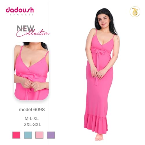 Shower - قميص نوم كاجوال نسائي طويل بحمالات رفيعة وربطة من الوسط - فستان حريمي صيفي طويل (فوشي, 3XL)
