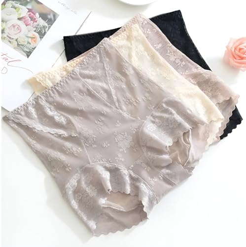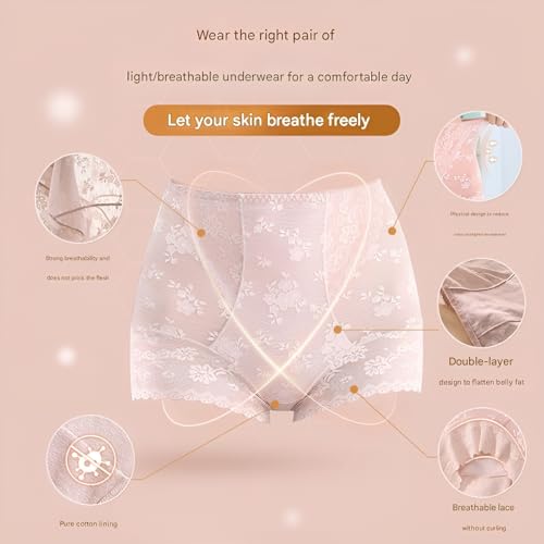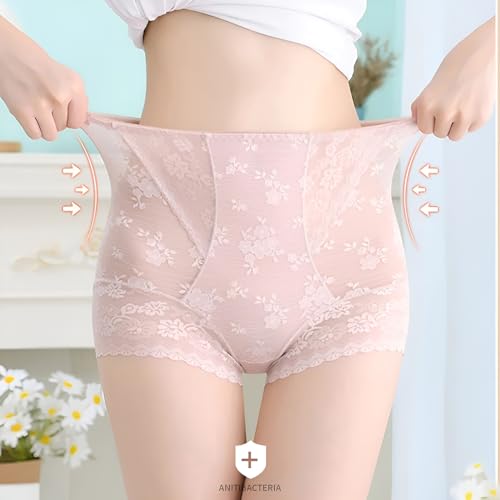 Plan A - مشد نسائي عالي الخصر بدون خياطة من الدانتيل بنقشة زهور – سراويل داخلية قطنية مريحة للتنحيف وتشكيل البطن ورفع المؤخرة – ملابس داخلية نسائية قابلة للتهوية ومرنة