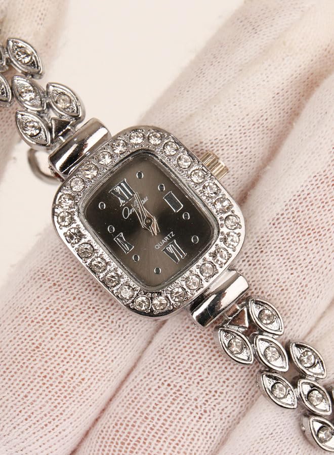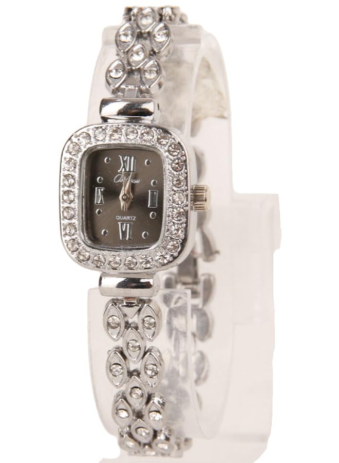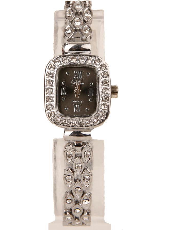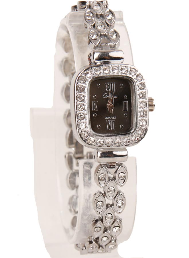 Generic - ساعة يد كلاسيك حريمي- انالوج - كوارتز- باند استانلس ستيل فضي - مينا سوداء - ON08