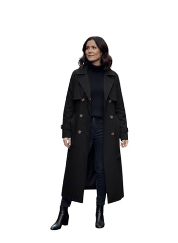 Generic - معطف نسائي ترينش كوت طويل بأزرار مزدوجة، بلطو حريمي قماش جابردين، مقاس واحد حتى 85 كيلو