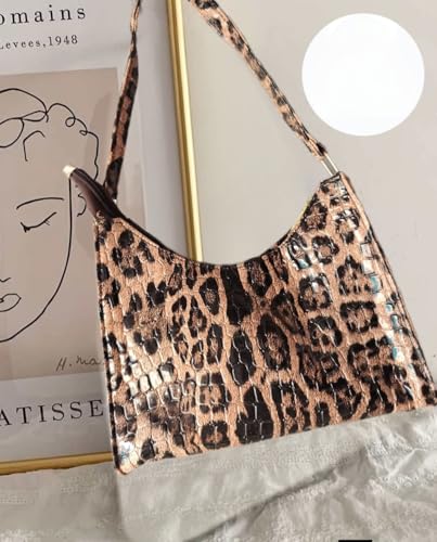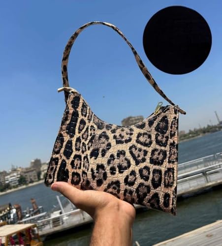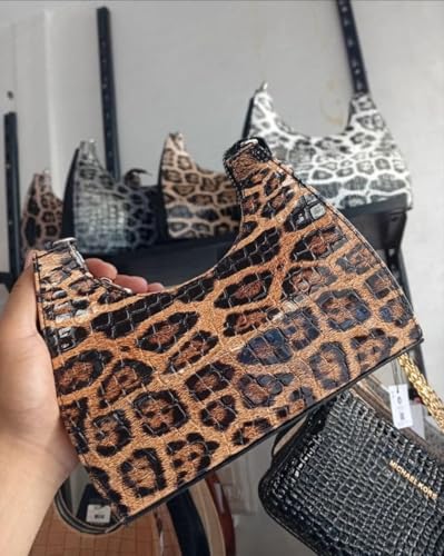 Generic - حقيبة يد نسائية بنمط جلد التمساح والفهد، بني وأسود، حقيبة كتف صغيرة
