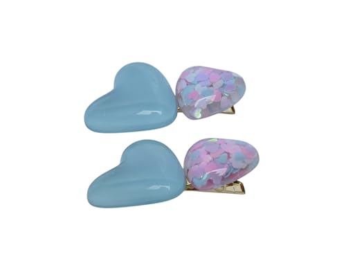 Generic - طقم مشابك شعر على شكل قلوب للنساء، قطعتان، لون أزرق