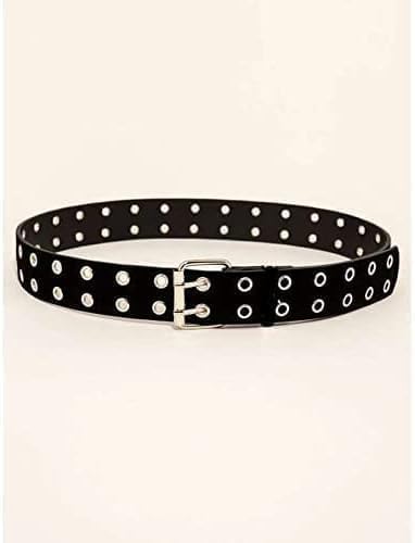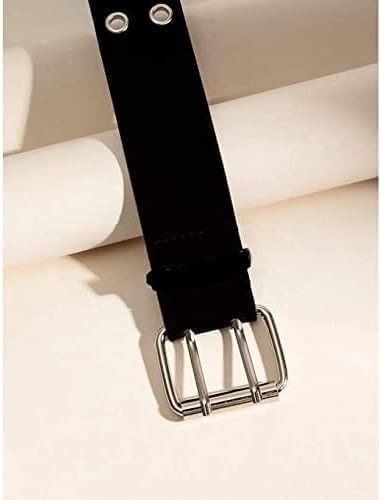 Generic - حزام جلد بابزيم معدني للنساء، لون اسود