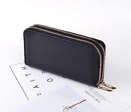 Generic - محفظة يد للموبايل متوسطة الحجم للنساء بسوستتين ، لون اسود، جلد صناعي