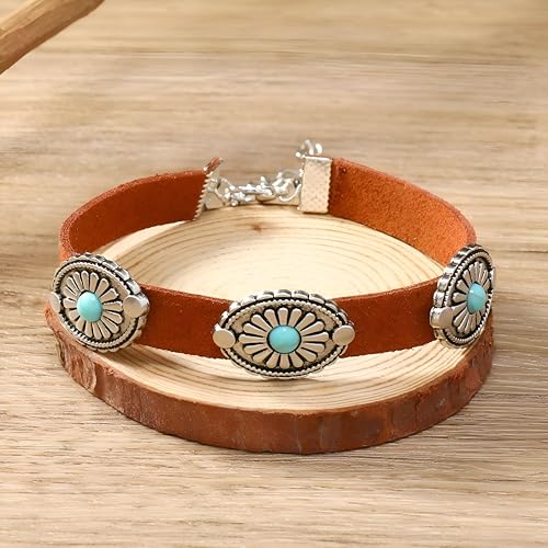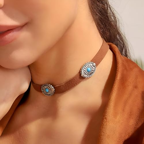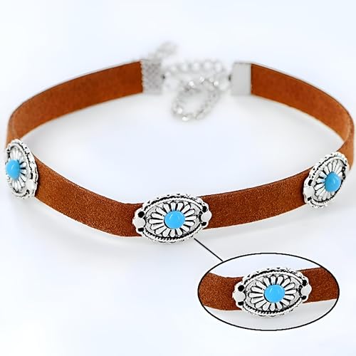 Generic - عقد نسائي - عقد انيق من الجلد والفيروز مستوحى من الفن الغربي يجمع بين السحر الريفي والأناقة العصرية لتجسيد نمط الموضة البوهيمي الأنيق