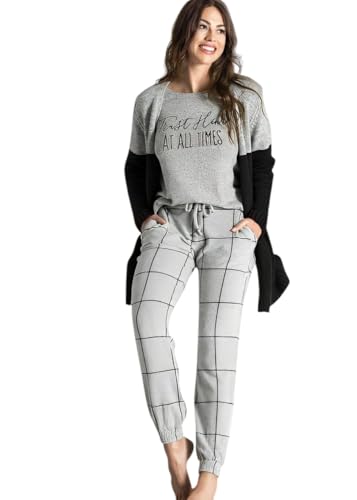 Generic - طقم بيجامة نسائي مكون من ثلاث قطع (تيشيرت مطبوع + بنطلون مربعات + كاردجان خفيف)