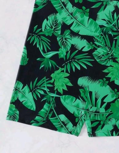 Generic - بدلة سباحة قطعة واحدة بطبعة استوائية ورقبة عالية وحزام خلفي للنساء، أسود وأخضر