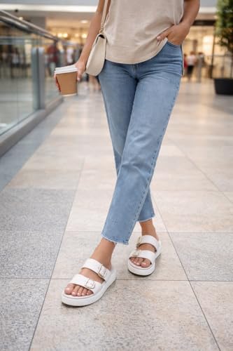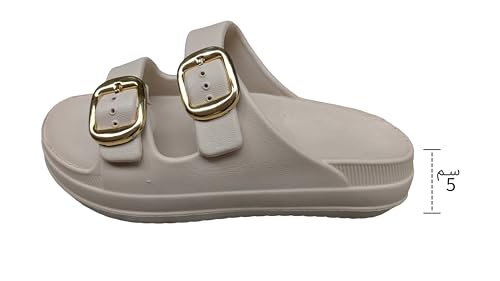 Generic - شبشب حريمي بحزامين وتوكة ذهبية | نعل طبي بارتفاع 5 سم