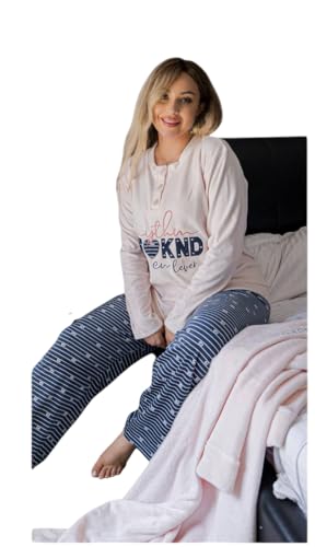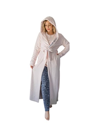 Generic - بيجامة شتوي قطيفة تيشيرت اكمام طويلة بأزرار و روب طويل كابتشو و بنطلون منقوش للنساء
