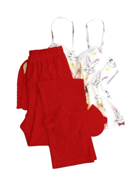 Generic - بيجامة صيفي كاجوال قطعتين للنساء مقاس موحد قطن ليكرا كود 2136 لون احمر