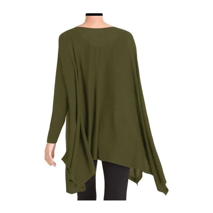 Generic - بلوزة طويلة من القطن للنساء لون زيتي