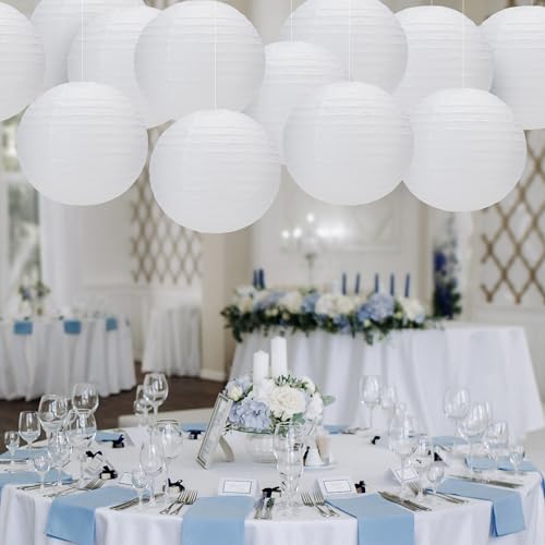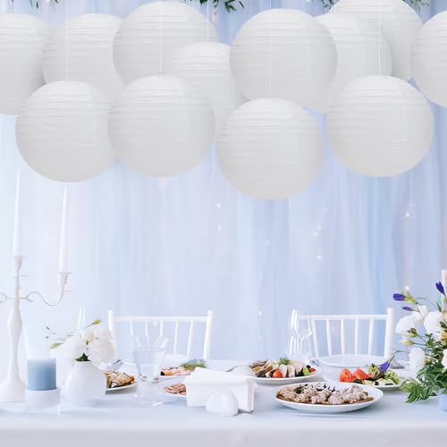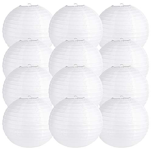 BESKIT - مجموعة فوانيس ورقية دائرية بيضاء مقاس 30.48 سم لحفلات الزفاف من بيسكيت، 12 قطعة