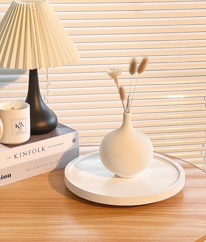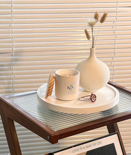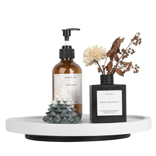 zoocatia - صينية خشبية دوارة للمطبخ، منظم دوار للدواليب، صينية بنمط ريفي للحمام، صينية زينة دائرية لأدوات الزينة والطاولة حوض الغسيل وطاولة القهوة، 27.9 سم، أبيض