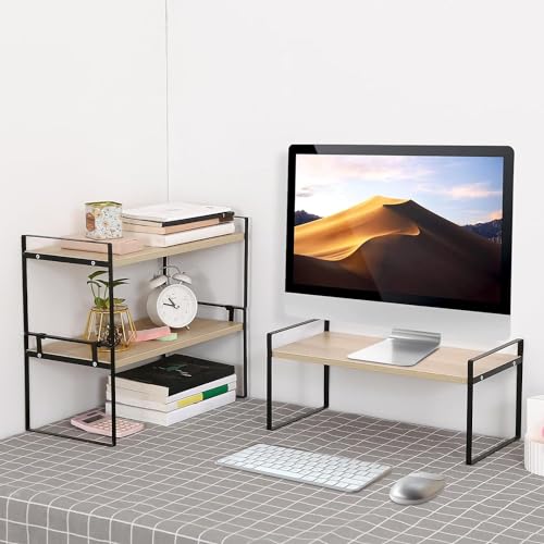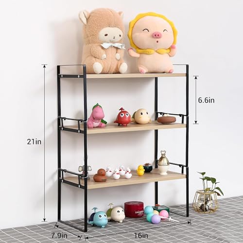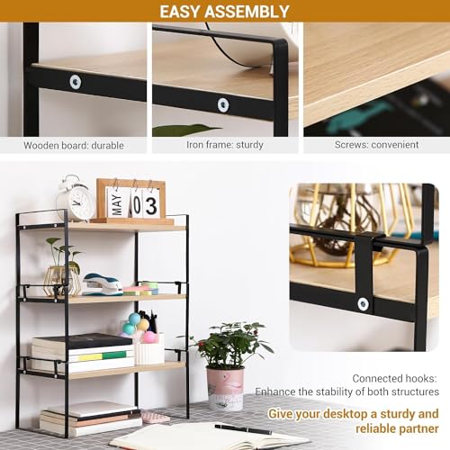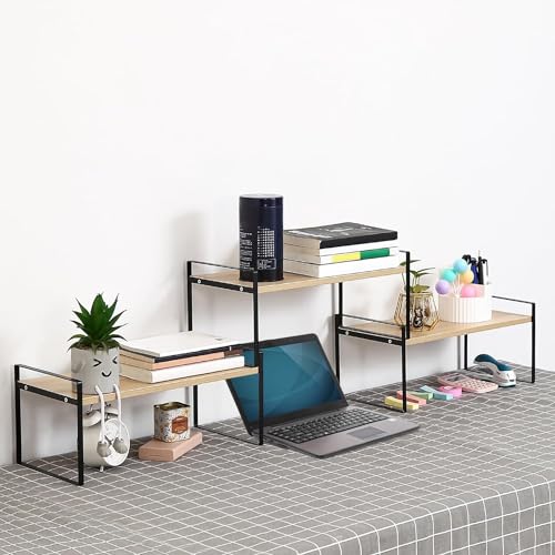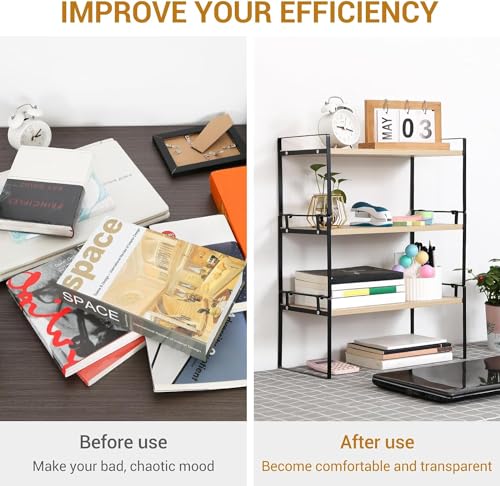 DoToGo - منظم مكتبي من الخشب لسطح المكتب، حامل بتصميم رفوف مكتبة لتخزين وتنظيم الكتب بتصميم جمالي لديكور الطاولة والتسريحة للنساء والرجال والأطفال (أسود وأبيض، 3 رفوف)