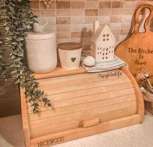 - تم تصميم حافظة الخبز الخشبية الجميلة هذه للحفاظ على خبزك طازجًا وخاليًا من العفن والرطوبة. مصنوعة من البامبو الطبيعي، فهي لا تخدم غرضًا عمليًا فحسب، بل تضيف أيضًا لمسة أنيقة إلى ديكور مطبخك، مما يجعلها مناسبة تمامًا للمنازل العصرية.